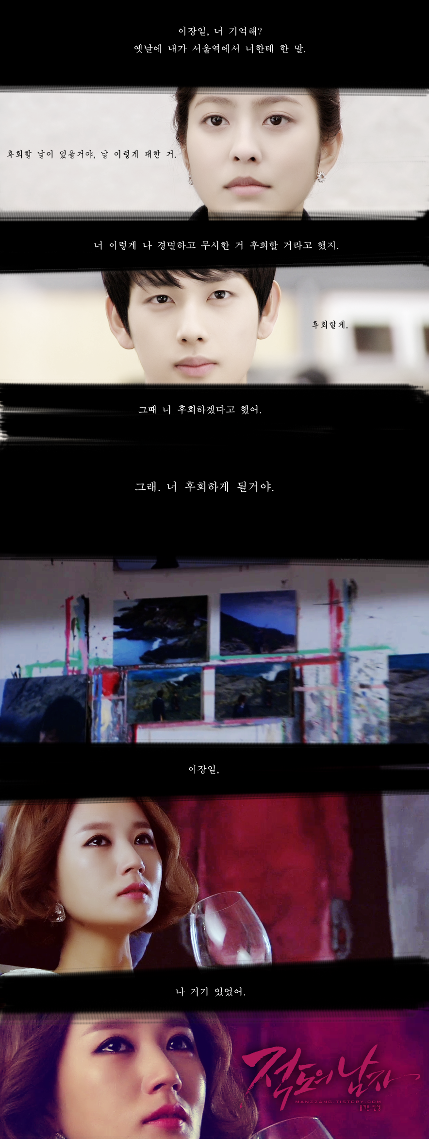 그 날, 수미는 그 곳에 있었다. 어떻게 그 곳에 있었고 무엇을 어떻게 봤으며 그날 왜 그런 행동을 했는지에 대해서는 회상에서 밝혀지겠지. 사실, 알고는 있었지만 이렇게 밝혀지니 왠지 흠칫. 현실은 현실인데 내 마음대로 바꿀 수 있는 현실. 그림을 통해 현실을 마음대로 각색하는 수미는, 현실 속에서도 그러기 위한 준비를 완료했다. 장일을 옭아맬 준비. 그렇게, 때가 왔다.